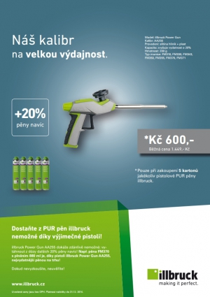Německo-americký výrobce Tremco illbruck přichází s ojedinělou aplikační pistolí na PUR pěny Illbruck Power Gun AA255. Jde o profesionální nástroj, jehož klíčovou předností je schopnost zvýšit efektivnost využití obsahu dóz s PUR pěnou minimálně o 20 %, a to bez jakékoliv ztráty struktury materiálu.