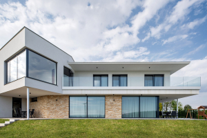 Moderní, stylově čistý, zděný a hodně prosklený dům s plochou střechou, takovou měl představu mladý manželský pár s dvěma dětmi o svém novém bydlení na předměstí jihočeského Tábora. Zadání, jak by měl dům vypadat, od nich projektant Ing. Lukáš Návara nejen slýchával, ale zásobovali ho i fotografiemi z procházek či z internetu. Výsledkem je „jednoduchý“ dvoupodlažní cihlový dům ze systému HELUZ FAMILY, který se rozkročil přes dva pozemky a i díky maximálně prosklenému přízemí a svažitému pozemku opticky téměř levituje nad krajinou. I prosklené zábradlí v horním patře s minimem rušivých předělů pomáhá naplnit název zdejších končin, kterým se říká na Krásné vyhlídce podle stejnojmenné ulice.